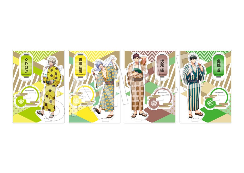 オリジナルコラボグッズには、湯上り姿のシトロン・三角・臣・丞の描き下ろしイラストを使用した「アクリルスタンド」「缶バッジ」のほか、劇団員たち24人の描き起こしミニキャラの「銭湯錠風キーホルダー」や、コラボならではの「サウナハット」「温泉まんじゅう」など新作アイテムが多数登場!