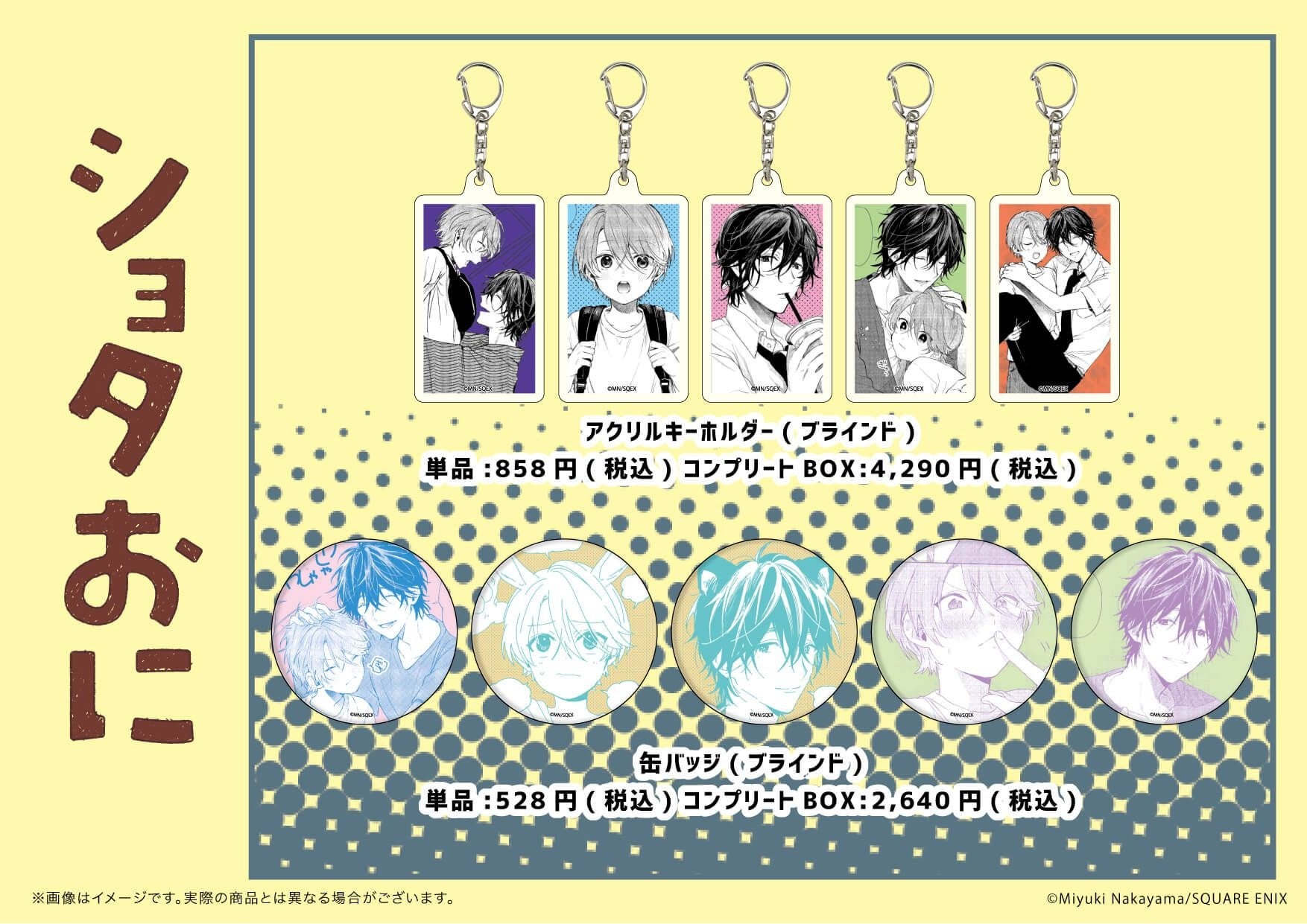ブラインド商品は缶バッジとアクリルキーホルダーの2種類