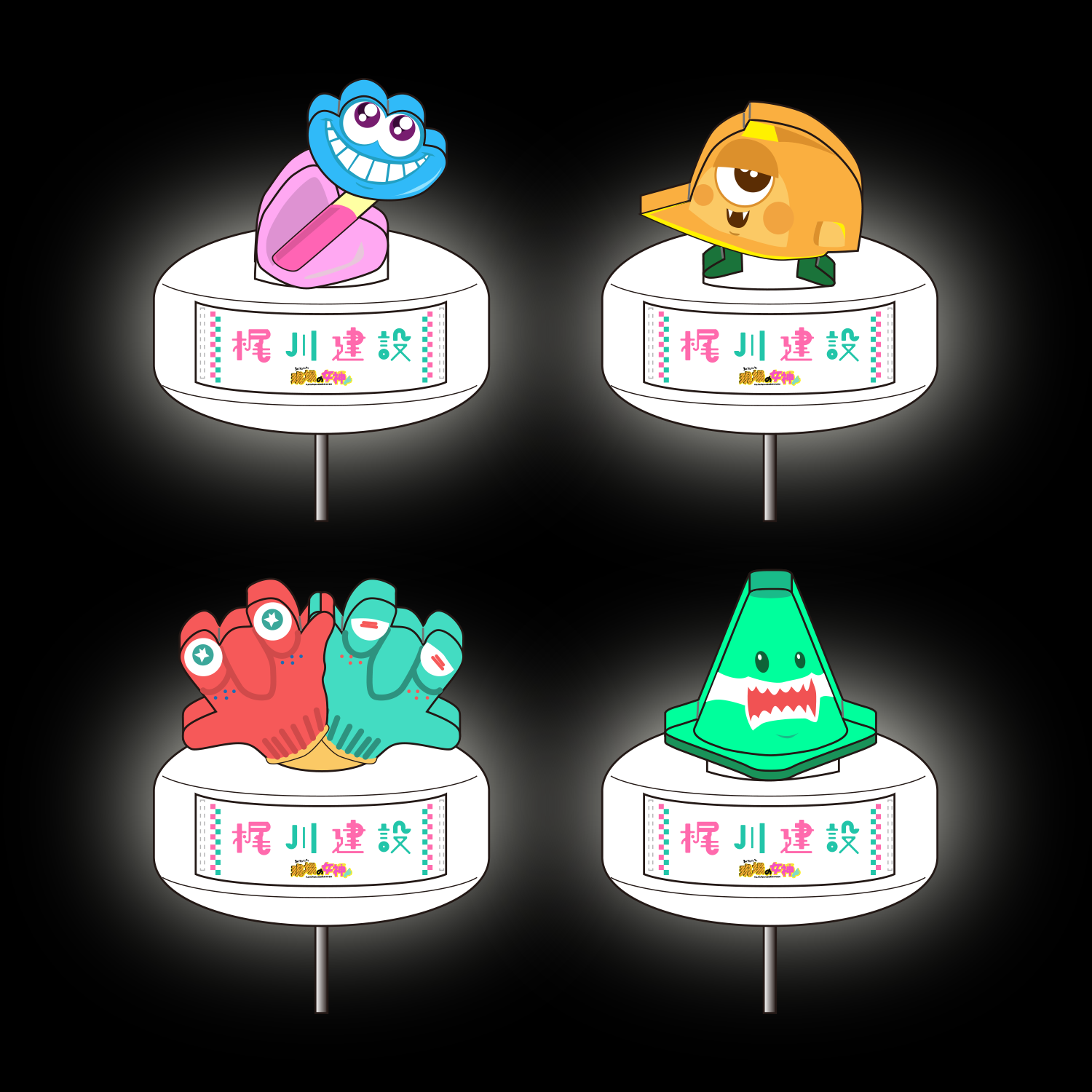 また、キャラクター投光器はサンプルとしてライトボーイ社のパンフレットに掲載され、企業による購入も可能です。全国の工事現場のイメージをこのバルーン投光器で刷新し、明るくキラキラとした工事現場の未来を創ってまいります。