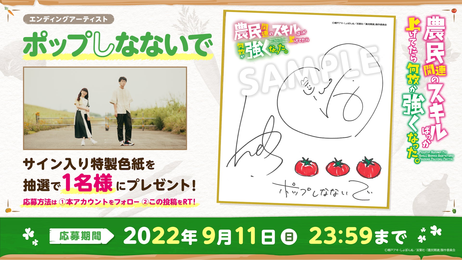 TVアニメ『農民関連のスキルばっか上げてたら何故か強くなった。』のエンディングテーマを担当するのは、ポップしなないで。