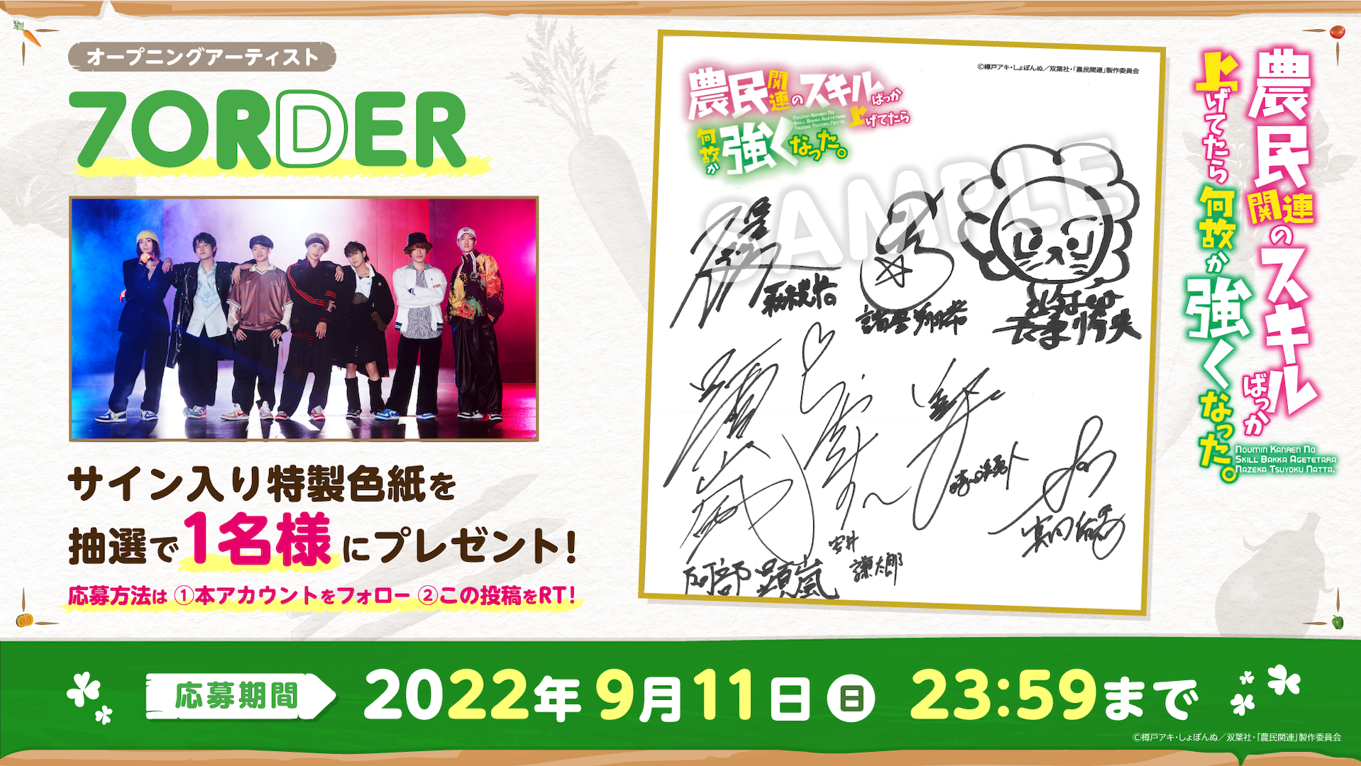 本日2022年9月5日(月)より、オープニングテーマを担当する7ORDER全員の直筆サインが入った色紙のプレゼントキャンペーンも実施致します。