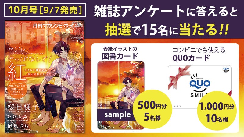株式会社リブレ(本社:東京都新宿区、代表取締役社長:太田歳子)は、紅先生が表紙の雑誌「マガジンビーボーイ2022年10月号」を9月7日に発売いたします。https://www.b-boy.jp/magazine/199831