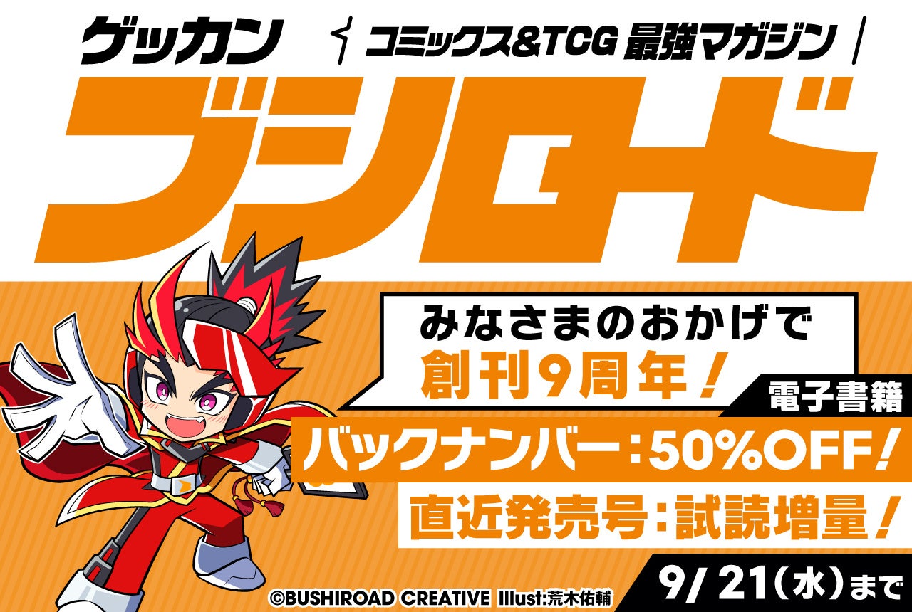 株式会社ブシロード(本社:東京都中野区、代表取締役社⻑:木谷高明、以下ブシロード)のグループ会社にあたる株式会社ブシロードクリエイティブ(本社:東京都中野区、代表取締役社長:成田耕祐)は、本日9月8日(木)より『「月刊ブシロード」創刊9周年記念電子書籍フェア』が開始することをご案内致します。