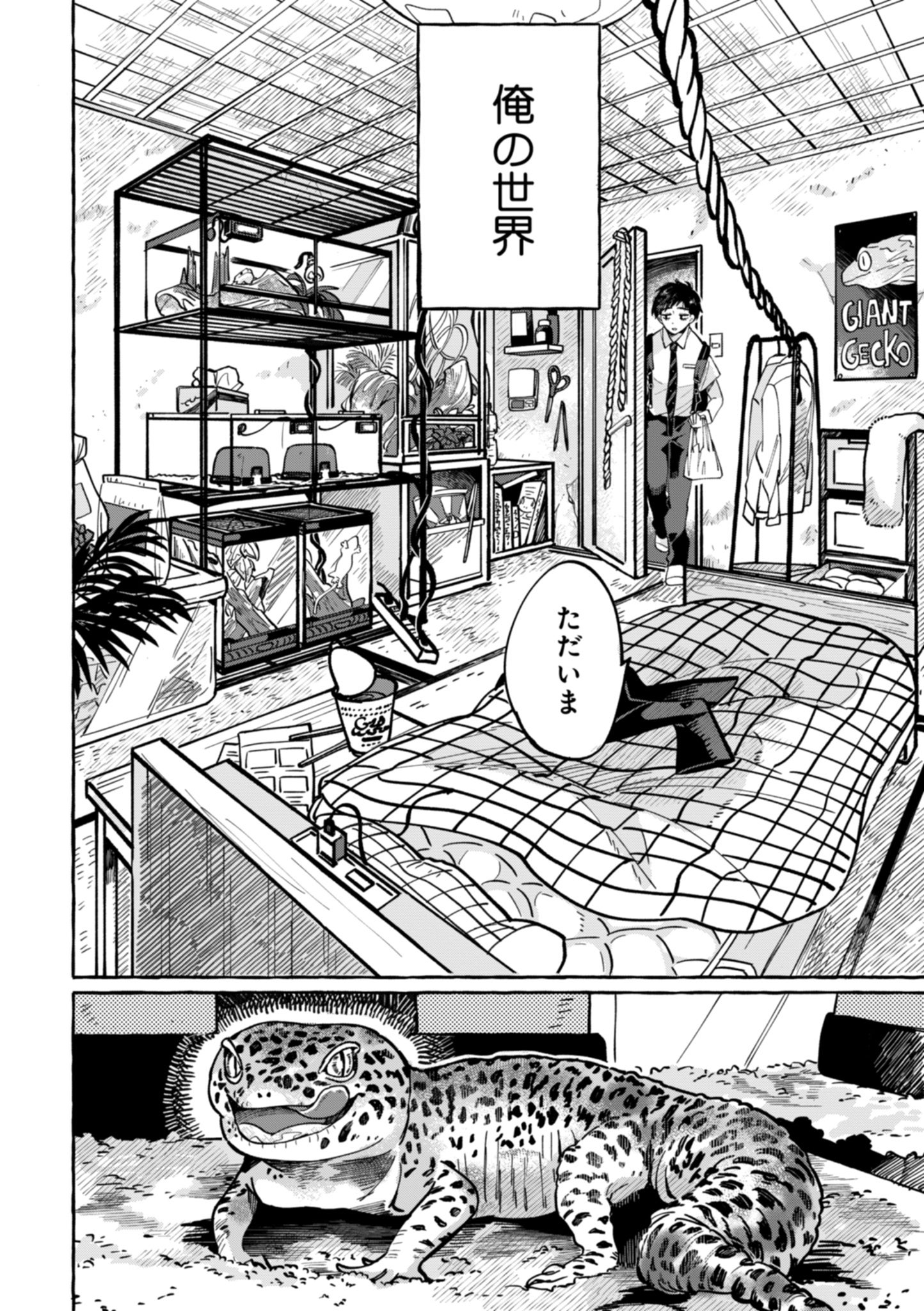 むちっと尻尾のレオパ、きょとん顔で壁に張りつくクレス、何を考えてるかわからない個性豊かな爬虫類たちに囲まれたワンルームはまるで楽園。