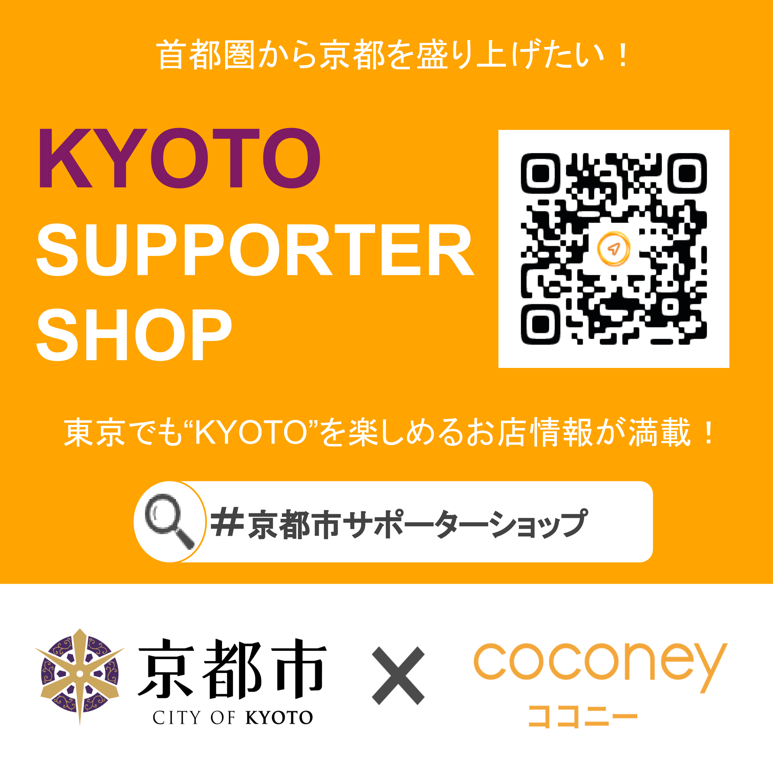 2021年7月に京都市認定のもと、京都市サポーターショップを紹介する媒体としてcoconeyが選定されて以降、首都圏内の京都に関する情報の掲載数も日々増えております。2022年2月より開催中の、お得に京都市サポーターショップを利用できる「おこしやすキャンペーン(※)」に続き、この度、新たなイベントを行うこととなりました。