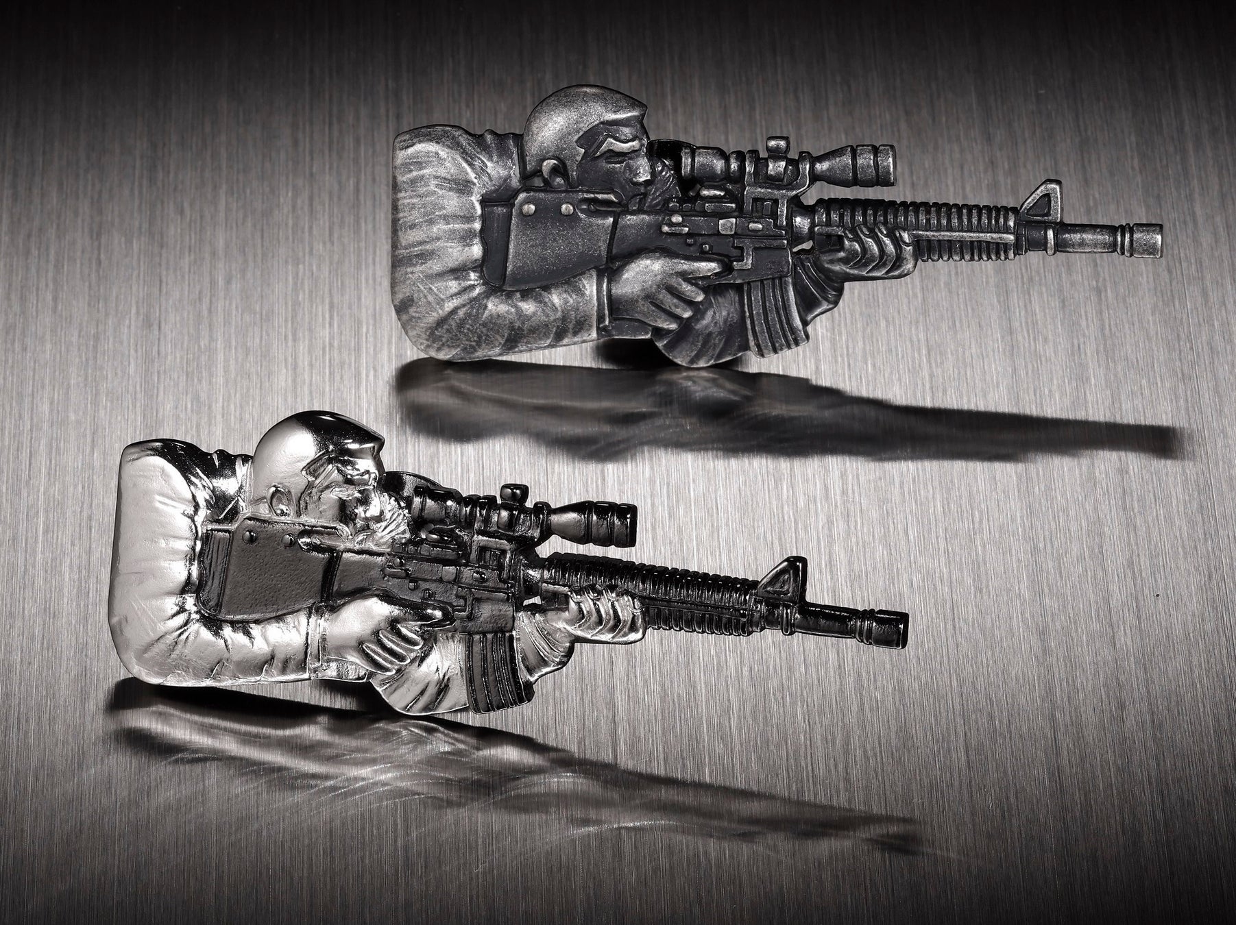「ブラックライフル」の異名をもつM16を黒く塗装したメッキ加工を施しています。