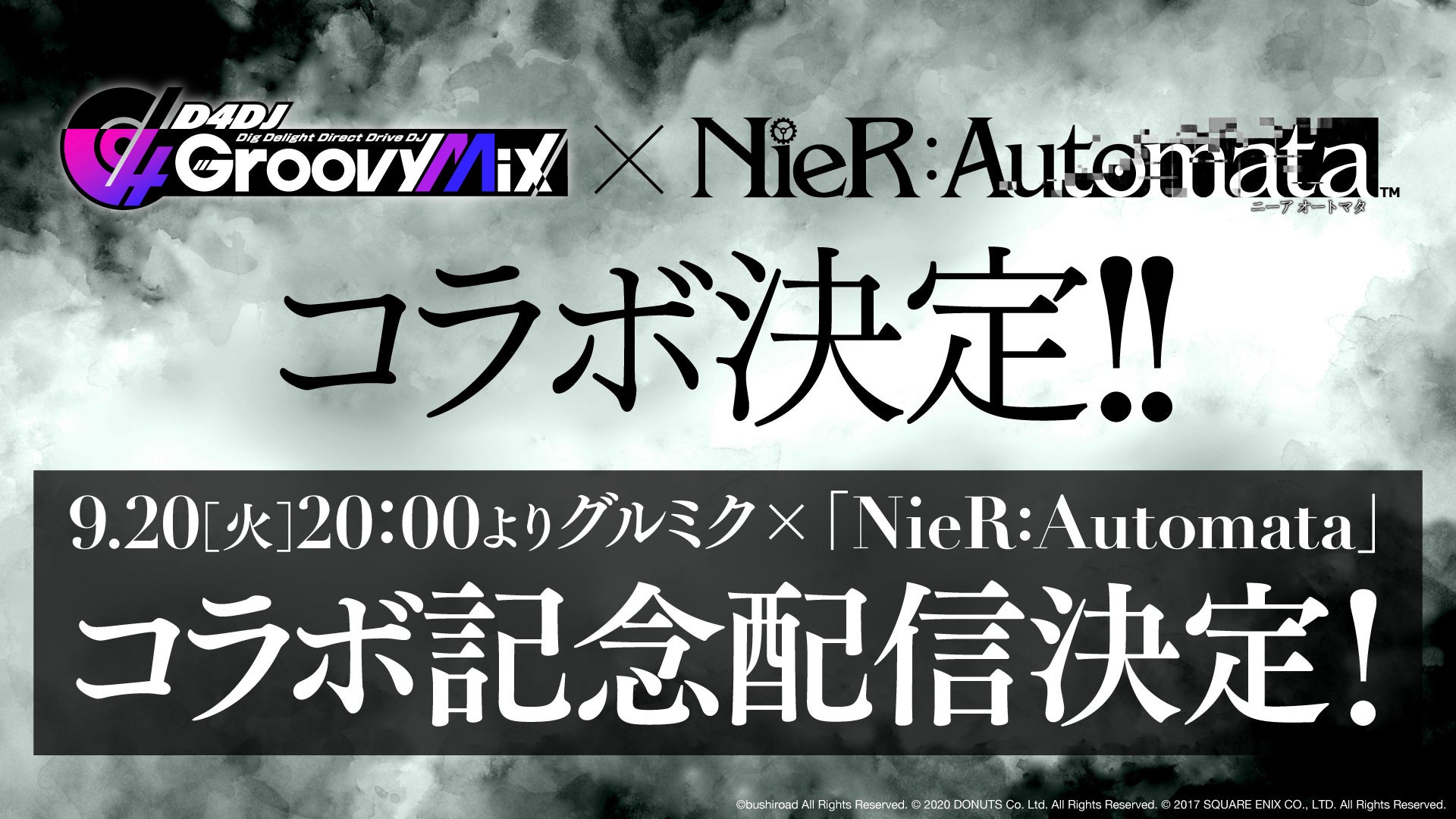 株式会社ブシロード(本社:東京都中野区、代表取締役社長:木谷高明)は、株式会社DONUTS(本社:東京都渋谷区、代表取締役:西村啓成)と共同開発のスマートフォン向けリズムゲーム「D4DJ Groovy Mix」(以下グルミク)にて、「NieR:Automata」とのコラボイベントを開催することを発表いたします。さらにコラボ最新情報をお届けする『グルミク×「NieR:Automata」コラボ記念配信』が決定いたしました。