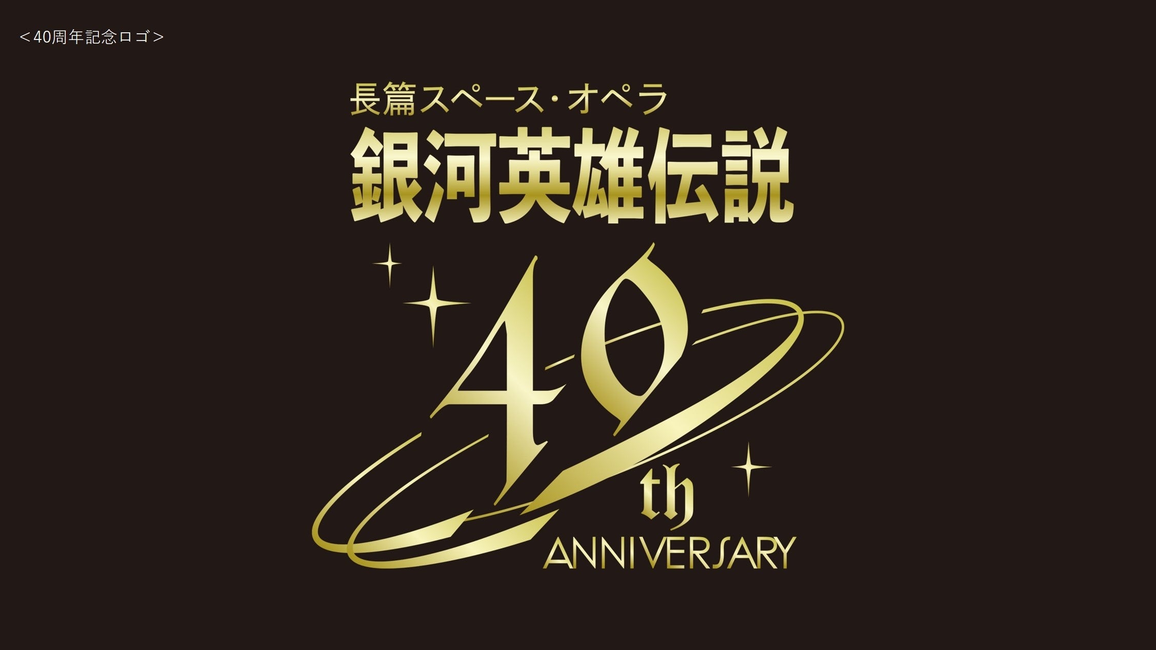 | <40周年ロゴマークの制作> 40年の歴史と格調を意識したタイトルのフォントと、「40」を囲む円環には、 二人の英雄が相まみえたアスターテ会戦の陣形と銀河系を重ね合わせた意味を込め、 左側の星はラインハルトとキルヒアイスを、右側はヤンを象徴する星を置いたデザインになっています。 |