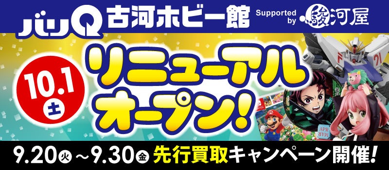 茨城県古河市にあるショッピングセンター「あかやまJOY」の2階に、売り場面積200坪を誇る「バリQ古河ホビー館 Supported by 駿河屋」が、ゲーム・フィギュア・プラモの大型店として段階的にリニューアルオープン!