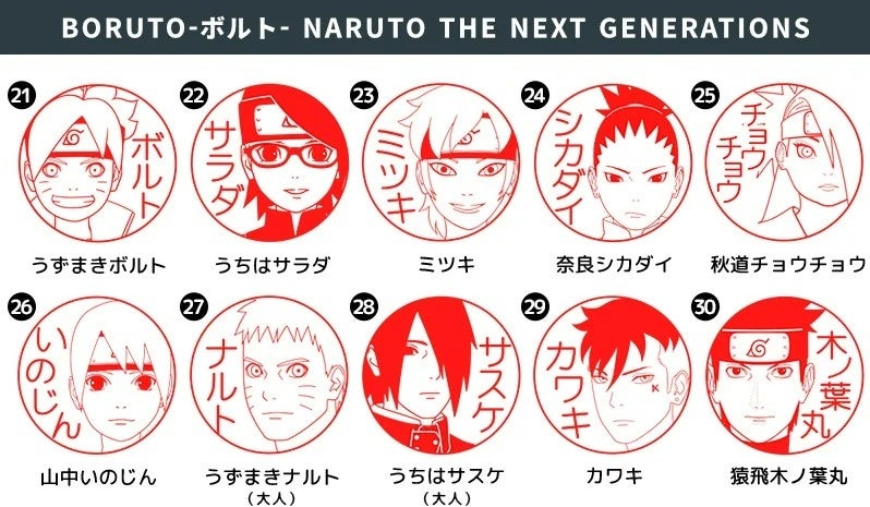 「NARUTO&BORUTO はんこコレクション」は、忍同士が「忍術」「体術」「幻術」「仙術」の能力を駆使して派手な戦いを繰り広げるバトルアクションアニメ「NARUTO-ナルト- 疾風伝」と「BORUTO-ボルト- NARUTO NEXT GENERATIONS」に登場するお気に入りのキャラクターと好きな名前や文字でつくれるオーダーメイドのはんこ。