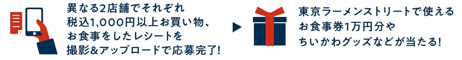- 東京ラーメンストリートお食事券1万円分やちいかわグッズが当たる!?