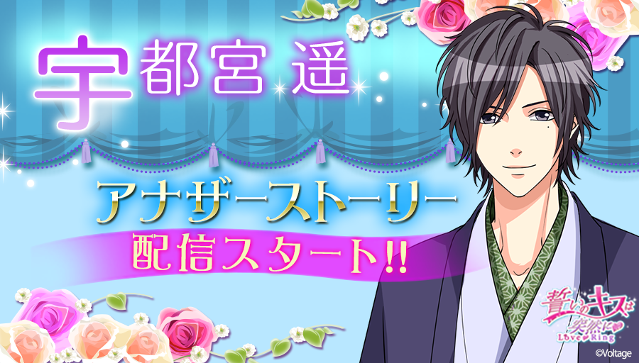 株式会社ボルテージ(本社:東京都渋谷区 代表取締役:津谷 祐司)は、提供中のボル恋タイトル「誓いのキスは突然に Love Ring」にて、宇都宮遥のアナザーストーリーを9月16日(金)より配信開始したことをお知らせいたします。