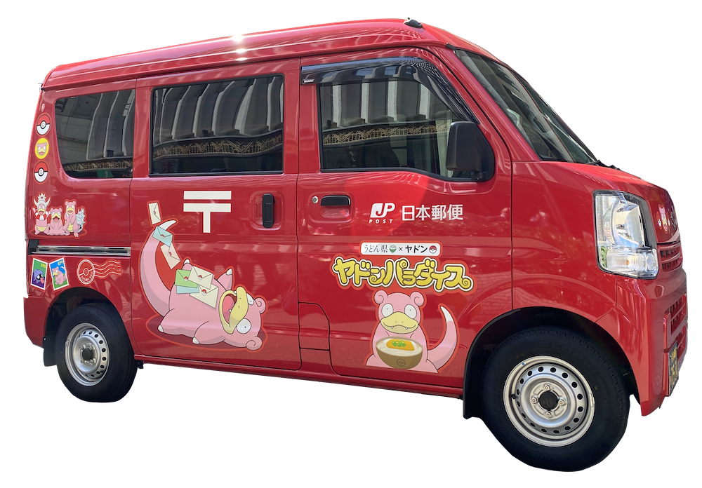 ヤドンの郵便局車が高松空港に登場します。イベント中に手紙の配達を依頼すると限定スタンプが押してもらえます。※限定スタンプは、消印ではありません。