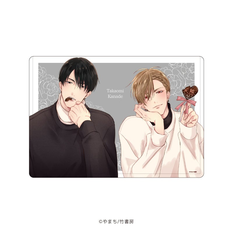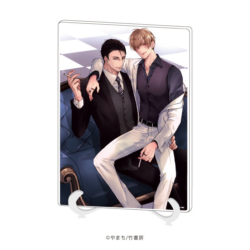 描き下ろしイラストを使用したキャラアクリルフィギュアがラインナップに登場! こちらは『うそつきと狼』の発売記念で販売された鷹臣と奏のアクリルスタンドと同じデザインになっています。