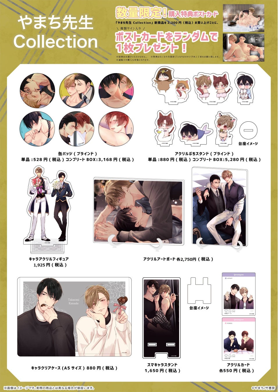 「やまち先生 Collection」新商品を2,200円(税込)お買い上げごとに、ポストカード(全2種)をランダムで1枚プレゼントしています。