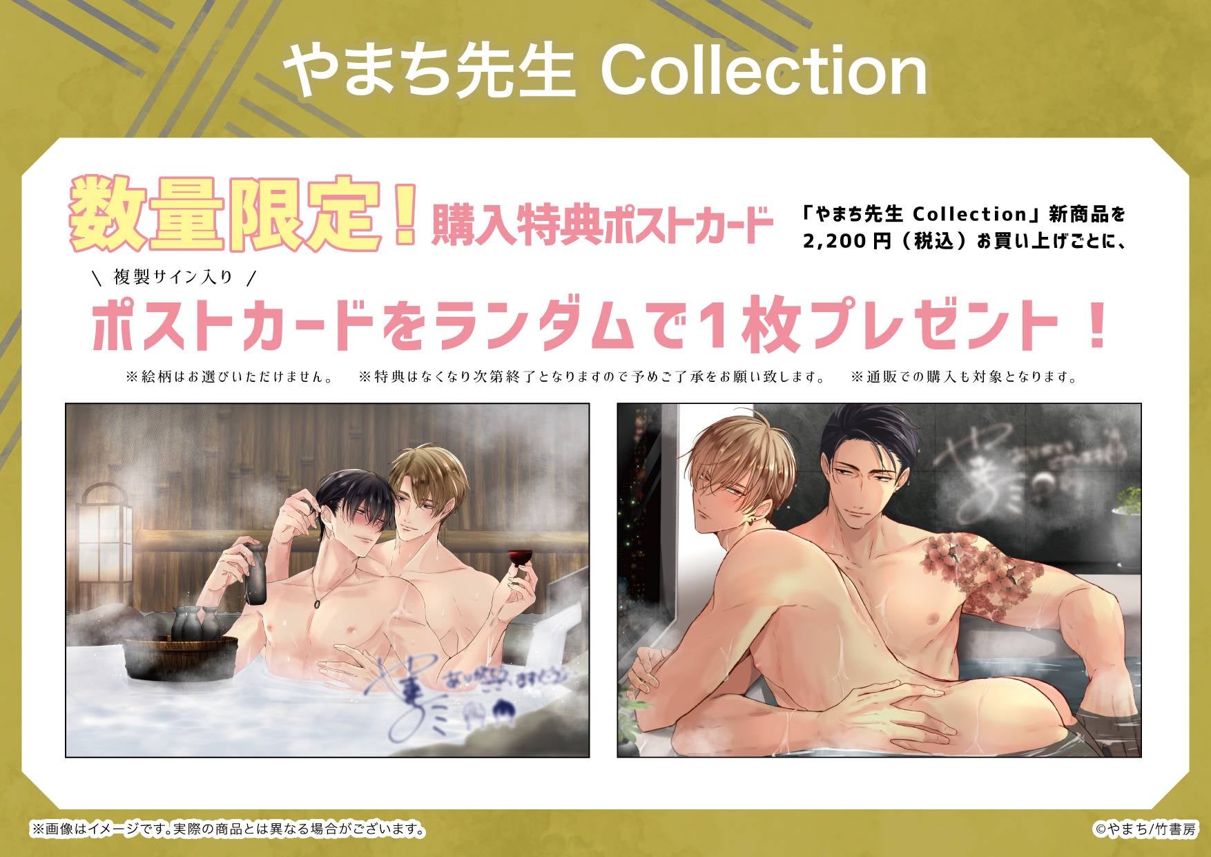 「やまち先生 Collection」新商品を2,200円(税込)お買い上げごとに、ポストカード(全2種)をランダムで1枚プレゼントしています。
