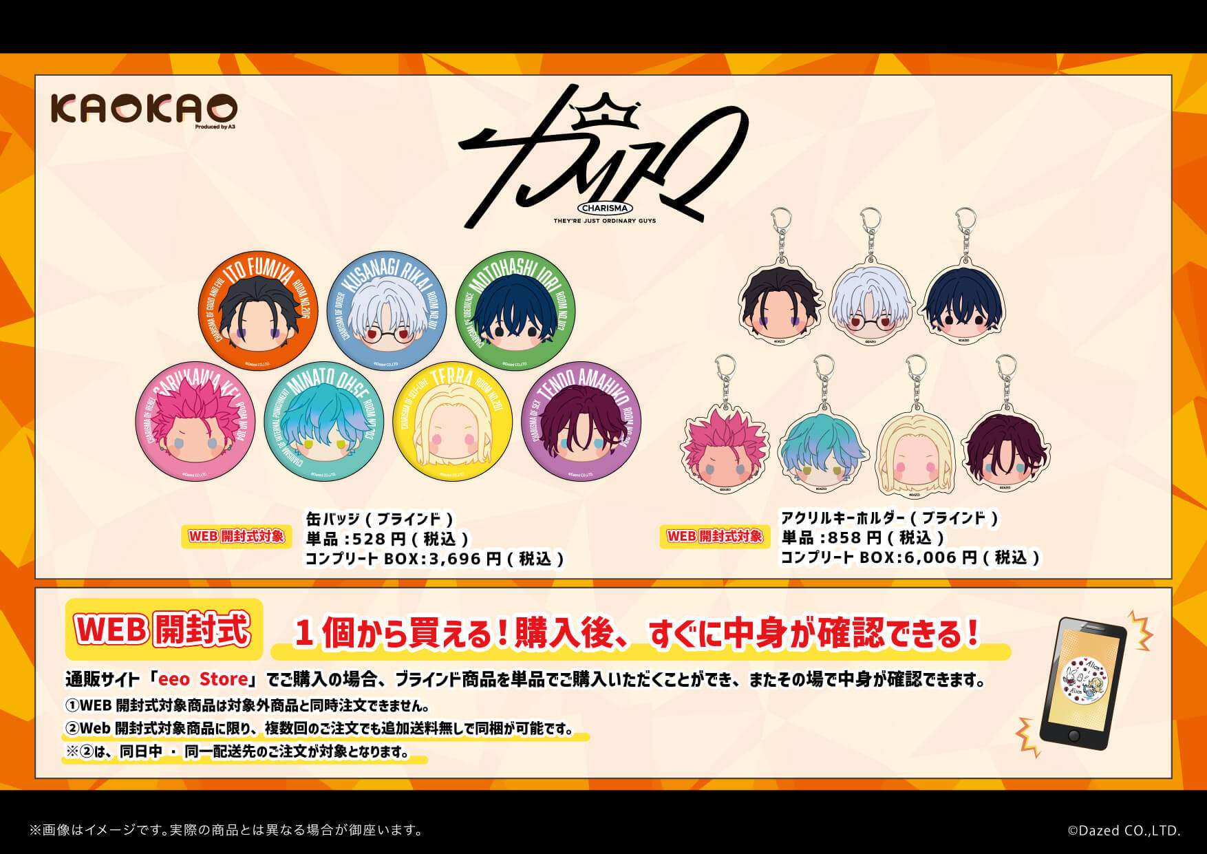 KAOKAOシリーズからは、定番グッズの缶バッジとアクリルキーホルダーが登場!『カリスマ』キャラクター7人のお顔が可愛くデフォルメされています。