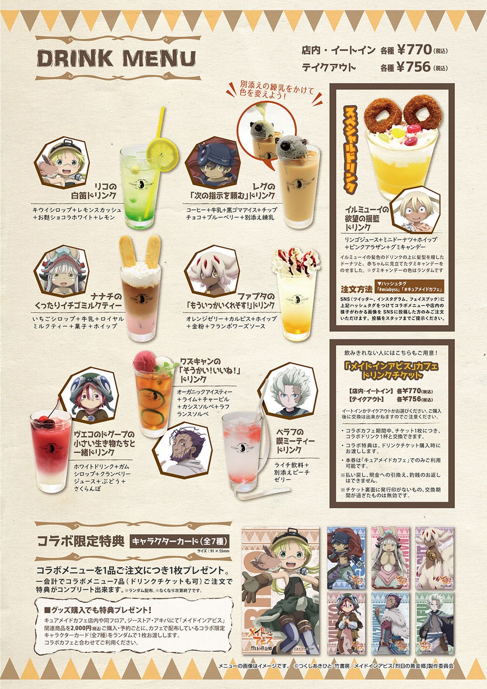 2022年9月23日(金・祝)より、秋葉原のCURE MAID CAFE’(キュアメイドカフェ)にて、TVアニメ『メイドインアビス 烈日の黄金郷』とのコラボカフェの開催が決定しました。