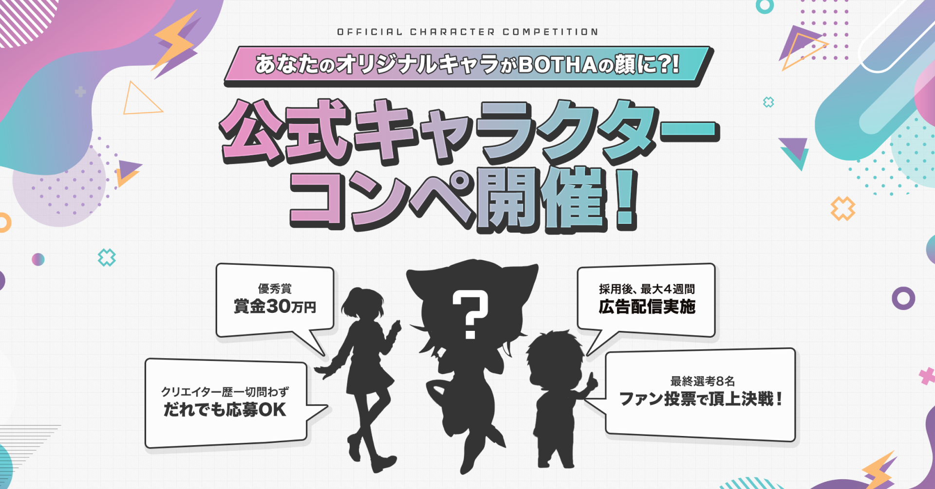BOTHA(ボータ)ではクリエイターの皆様、ファンの皆様と「サービスを一緒に作り上げてく」というビジョンを掲げており、クリエイターの皆様が応募した作品から、ファンの皆様の投票で選定するという”参加型”のキャラクターコンペ形式でのイベント開催を決定いたしました。
