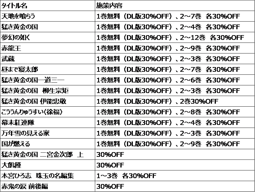 2.本宮ひろ志が手掛けた歴史まんが 17作品83冊を無料&30%OFF