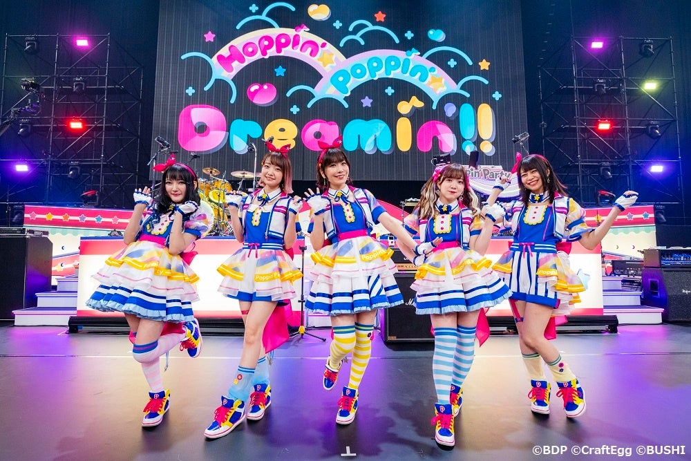 劇場版「BanG Dream! ぽっぴん’どりーむ!」のオープニング楽曲「ぽっぴん’どりーむ!」とエンディング楽曲「星の約束」、さらにAyase提供楽曲「イントロダクション」をライブ初披露。キャラクターによるストーリー映像を挟みながら新旧の人気曲で会場を盛り上げ、約2年ぶりの開催となったPoppin’Partyによる単独公演を成功の内に終えました。