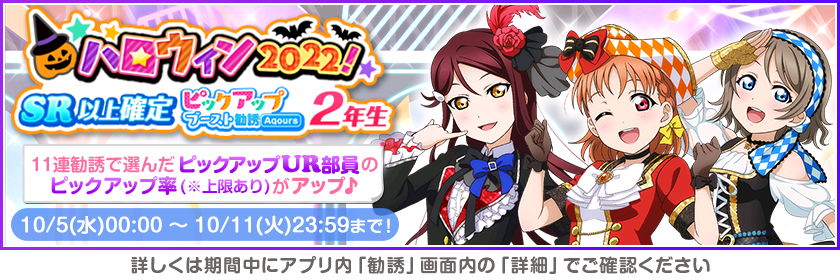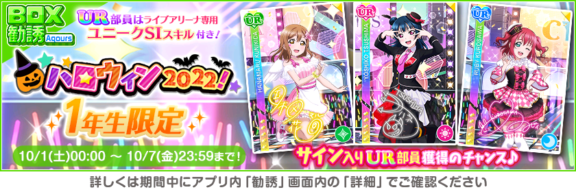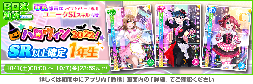 株式会社ブシロード(本社:東京都中野区、代表取締役社長:木谷高明)は、KLab株式会社(本社:東京都港区、代表取締役社長:森田英克)と共同開発いたしましたスマートフォン向けアプリ『ラブライブ!スクールアイドルフェスティバル』(以下、スクフェス) においてスクフェスハロウィン2022キャンペーン第1弾の開催をお知らせいたします。