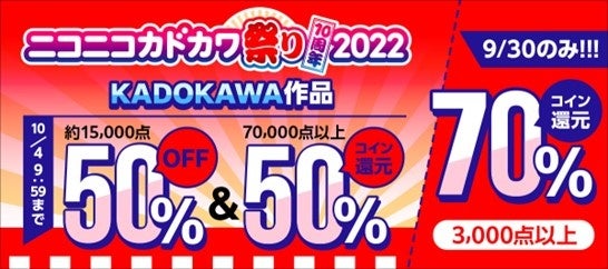 株式会社ブックウォーカー(本社:東京都千代田区 代表取締役社長:森田岳)は、総合電子書籍ストア「BOOK☆WALKER(以下、BOOK☆WALKER)」において、「ニコニコカドカワ祭り2022」を開催いたします。