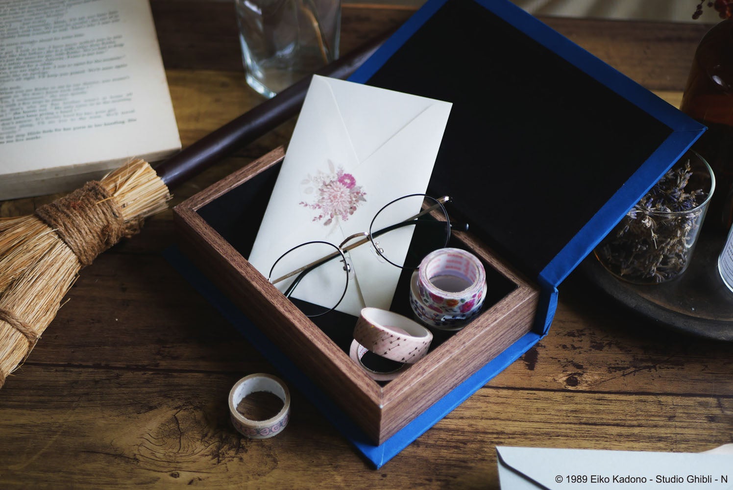 ストーリに沿って各場面に登場する小物がモチーフとして描かれており、キキの物語と思い出がぎゅっとつまったようなデザインのブックケース型小物入れは、お気に入りのアクセサリーや大事な手紙などをしまうのにぴったりです。