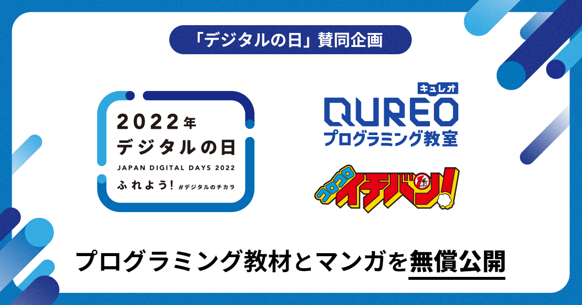 株式会社CA Tech Kidsと株式会社スプリックスとの合弁会社で、プログラミング教材の開発・運営・販売事業を行う株式会社キュレオ(本社:東京都渋谷区、代表取締役社長:上野朝大)は、運営する子ども向けプログラミング教室「QUREO(キュレオ)プログラミング教室」https://qureo.jp/ が、小学館の発行する月刊誌「コロコロイチバン!」と共に、「デジタルの日」に賛同することをお知らせします。