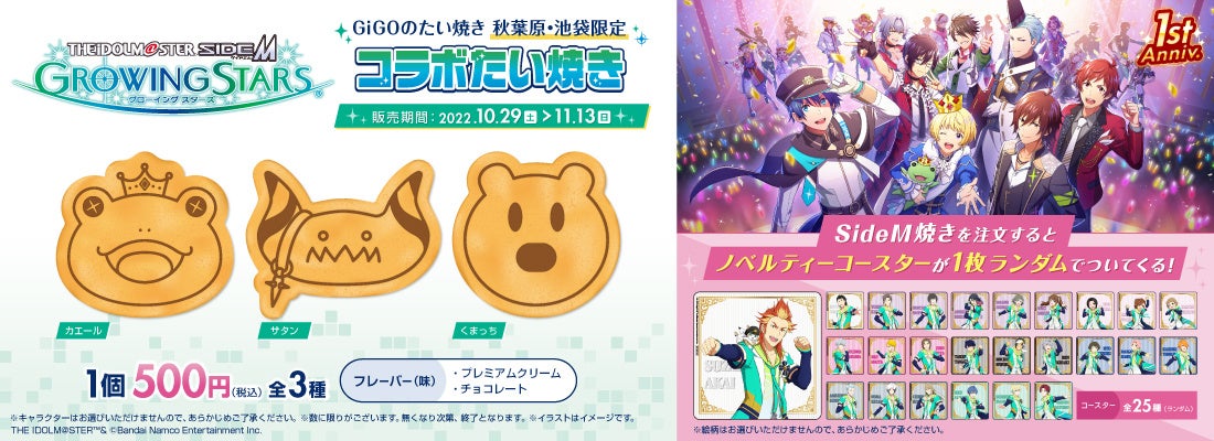 GiGOのたい焼き秋葉原・池袋にて「アイドルマスター SideM」とコラボレーションしたコラボたい焼き『SideM焼き』を10月8日(土)より発売いたします。