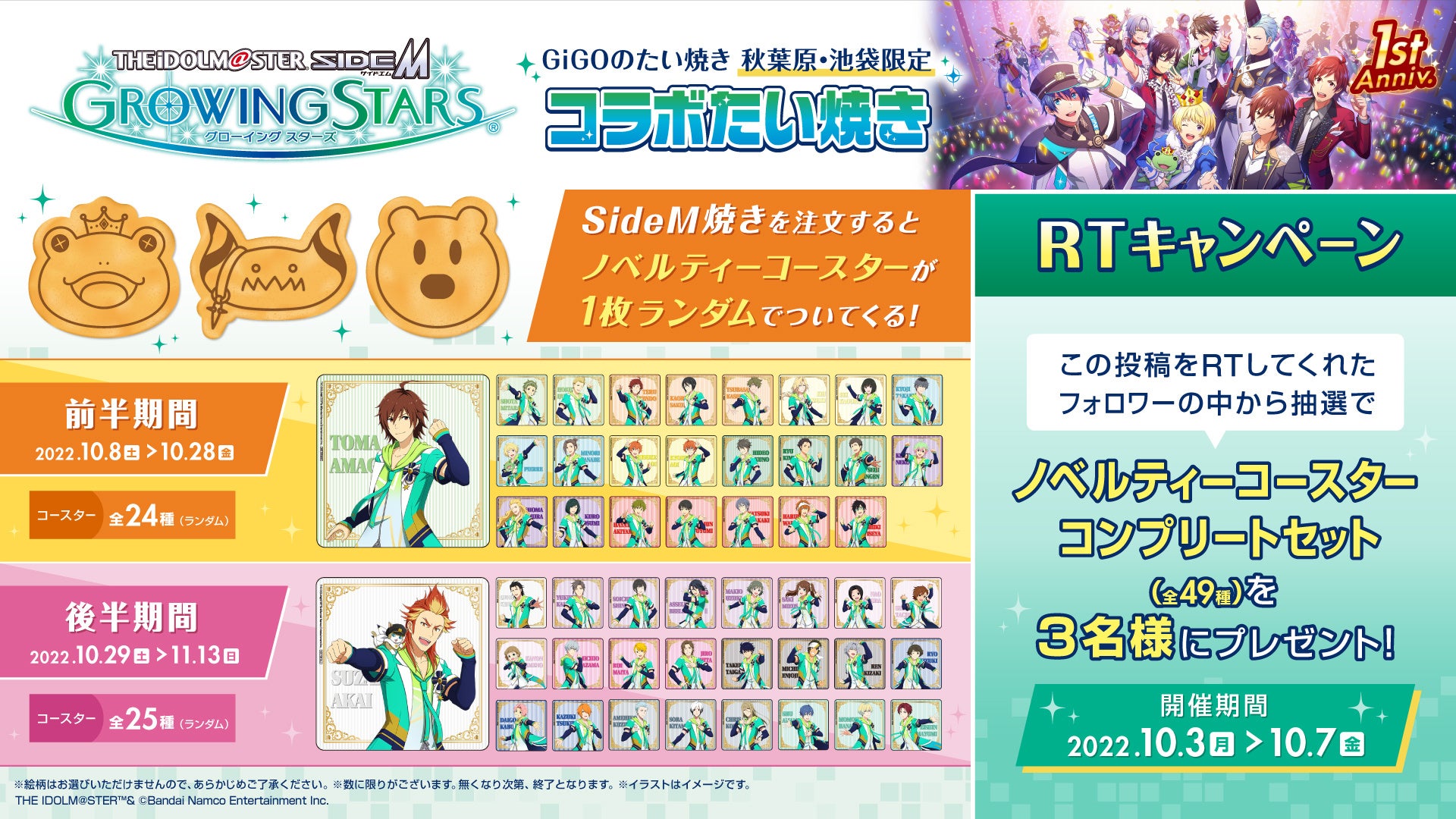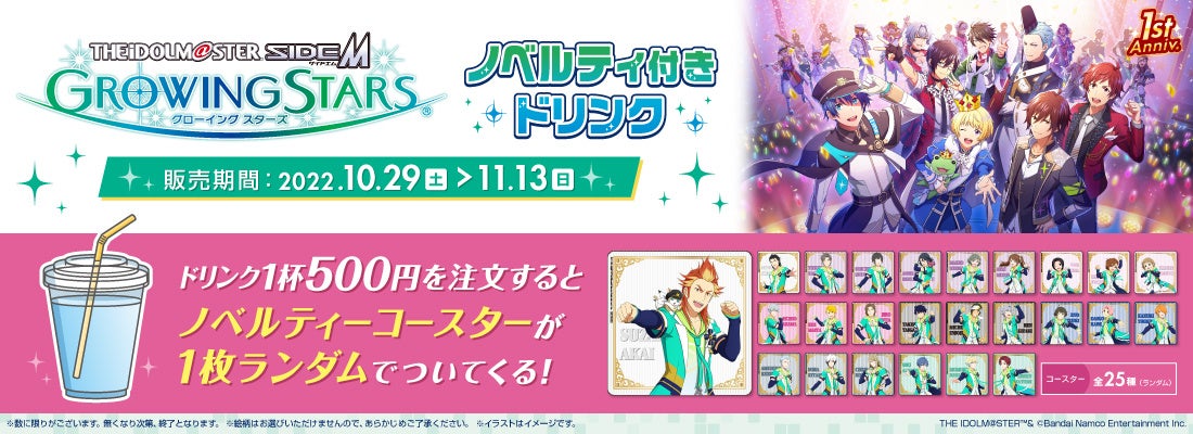 株式会社GENDA GiGO Entertainment(本社:東京都港区 代表取締役社長:上野 聖 以下当社)は2022年10月8日(土)より、当社※1が運営する対象店舗にて、株式会社バンダイナムコエンターテインメントが展開するアプリゲーム『アイドルマスター SideM GROWING STARS』のリリース1周年を記念したコラボ企画を開催いたします。