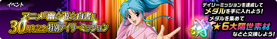 - 「アニメ『幽☆遊☆白書』30周年記念特別デイリーミッション」
