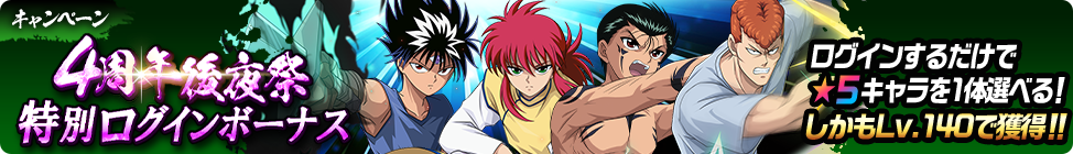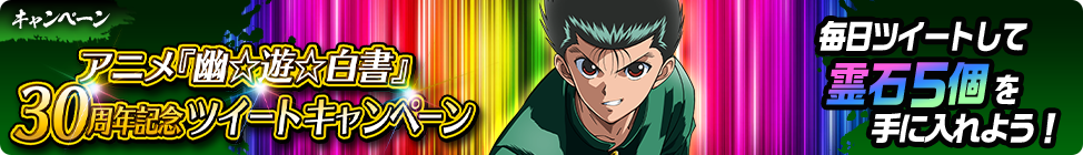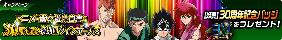 - 「アニメ『幽☆遊☆白書』30周年記念 特別ログインボーナス」