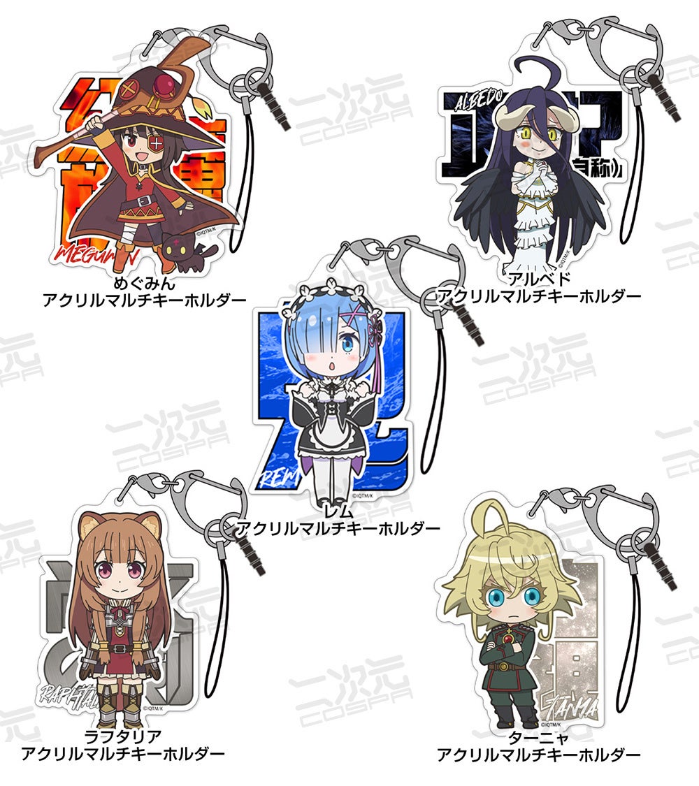 メインビジュアルを元にデザインした「あなざーわーるど Tシャツ」、異世界の護りびと「パンタグリュエル Tシャツ」、「レム」や「めぐみん」たちのアクリルマルチキーホルダーなど新商品が二次元コスパから登場。