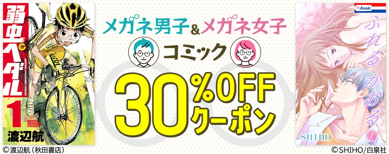 メガネをかけ直す仕草、メガネ越しの視線、メガネあり・なしで感じるギャップ! 「auブックパス」では、魅力的なメガネ男子&メガネ女子が登場するコミックを大特集いたします。男性向けコミックと女性向けコミック、どちらもご紹介していますので、幅広い作品をお楽しみいただけます。また、対象の約180作品(約1,300冊)に使える30%OFFクーポンを期間限定で配布中です。10/1と制定されている記念日「メガネの日」と合わせて、ぜひこの機会に”メガネキャラ”の魅力に触れてみてください。
