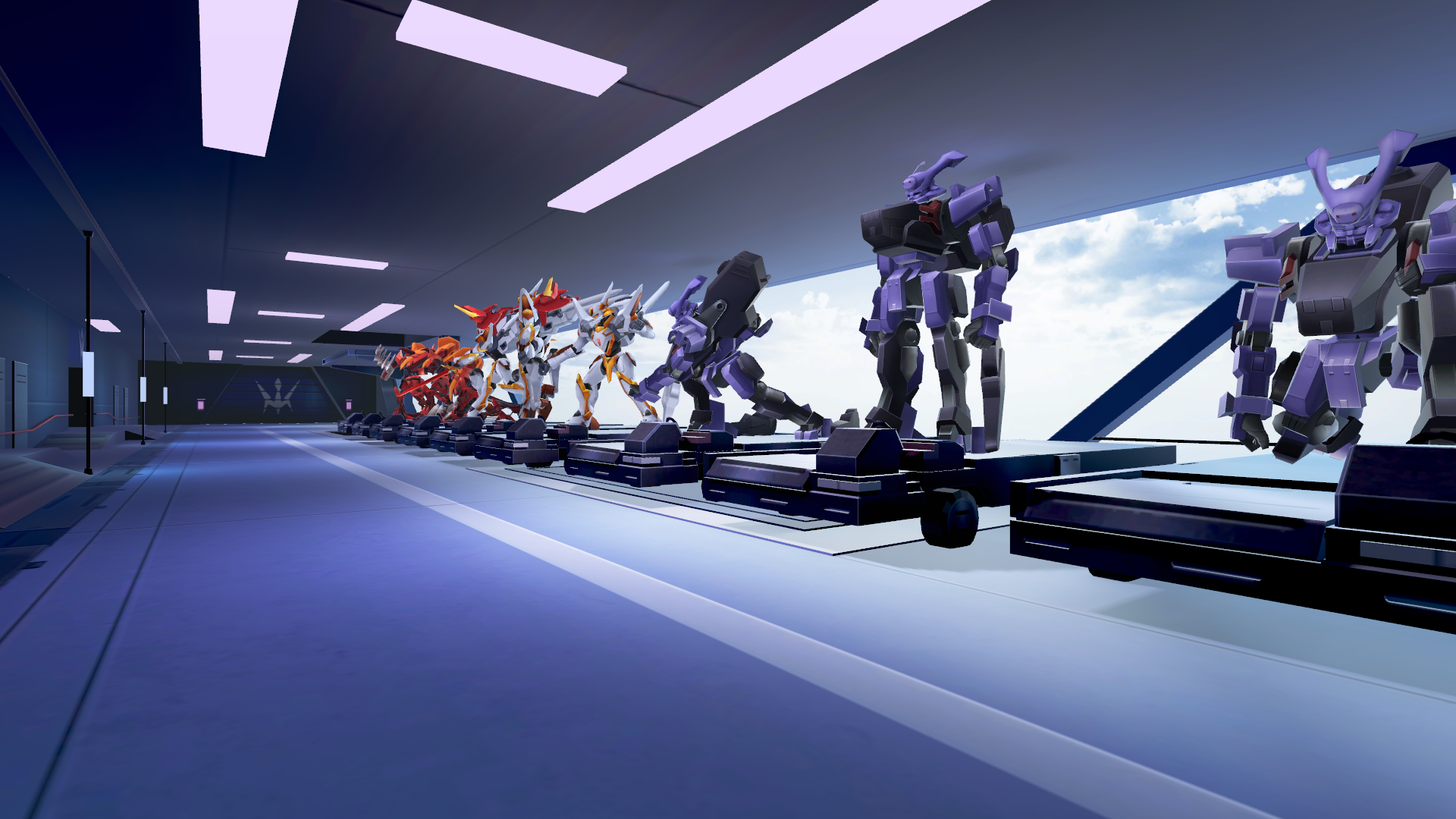 バーチャル空間ならではの原寸大のランスロットや紅蓮二式など、ナイトメアフレームが展示されている会場です。(提供:コードギアス 反逆のルルーシュ ロストストーリーズ)