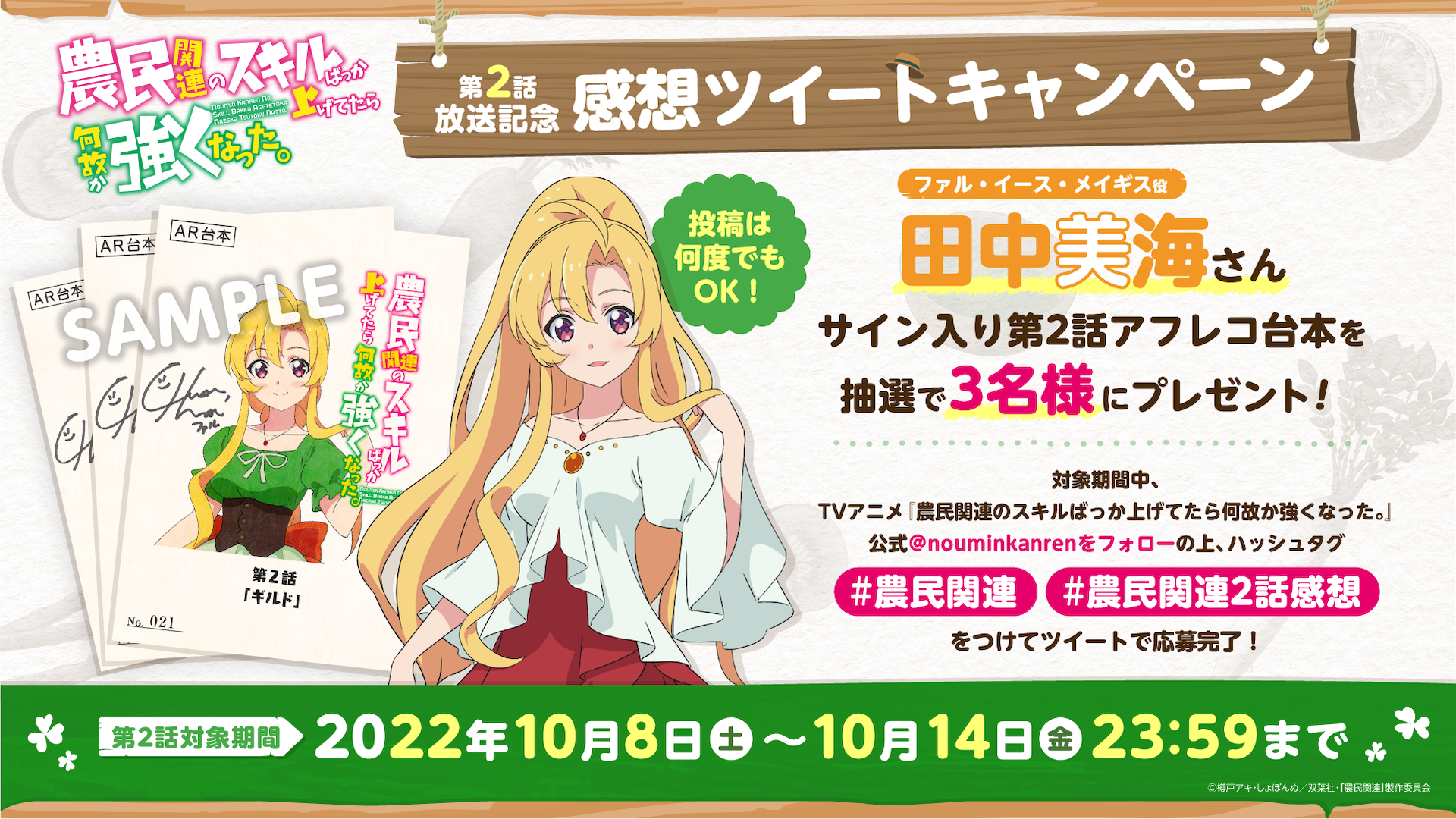 - TVアニメ『農民関連のスキルばっか上げてたら何故か強くなった。』 第2話放送記念 感想ツイートキャンペーン