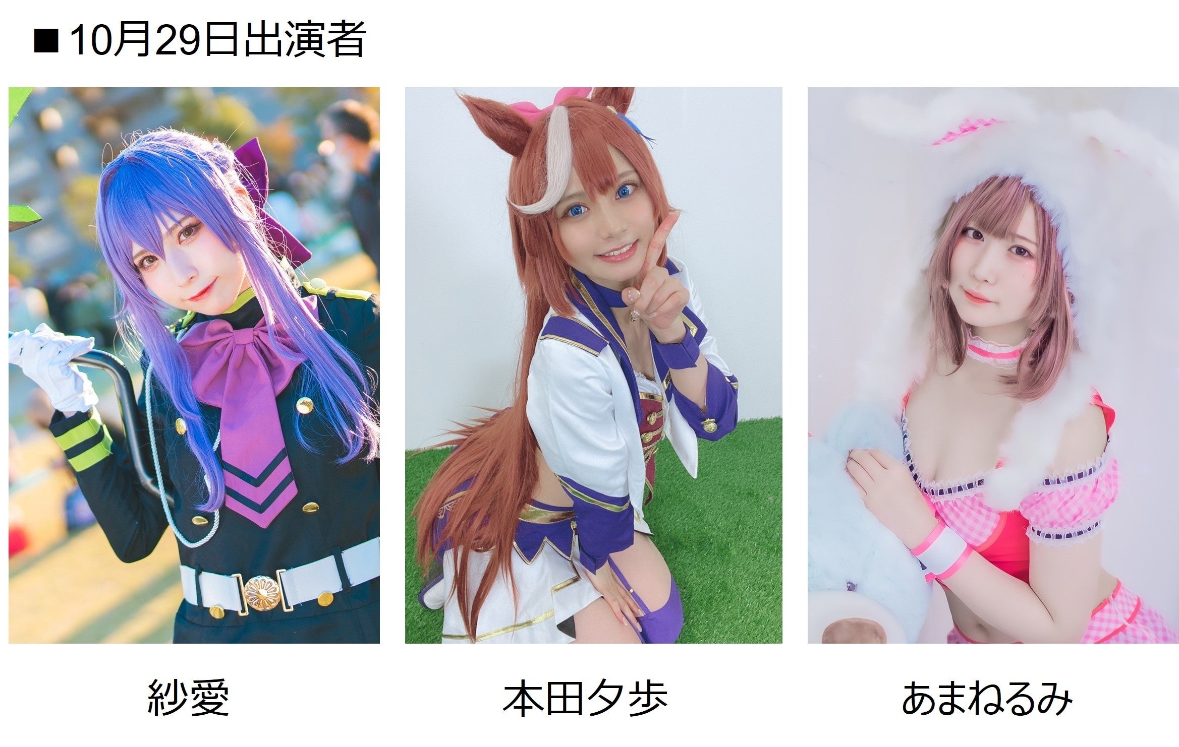 キヤノンマーケティングジャパン株式会社の協力のもと、最新機種のカメラとレンズを借りて撮影を体験できる「ガチ撮影エリア」を今年も開催。SNS総フォロワー数100万人を超える、6名の人気コスプレイヤーが出演し、撮影を楽しめます。詳しい参加方法やタイムテーブルは後日発表します。