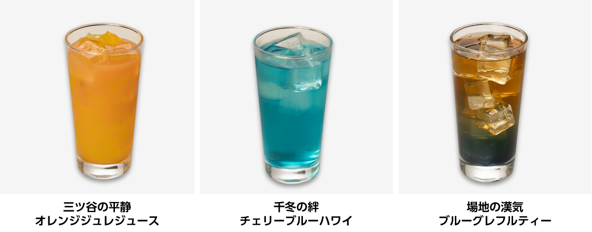 三ツ谷をイメージしたオレンジゼリージュースです。オレンジゼリーにイライラを和らげる効果のあるピンクグレープフルーツを加えて、三ツ谷のイメージカラーであるオレンジ色のおしゃれなゼリードリンクに仕上げました。クールで冷静な三ツ谷を表現しています。