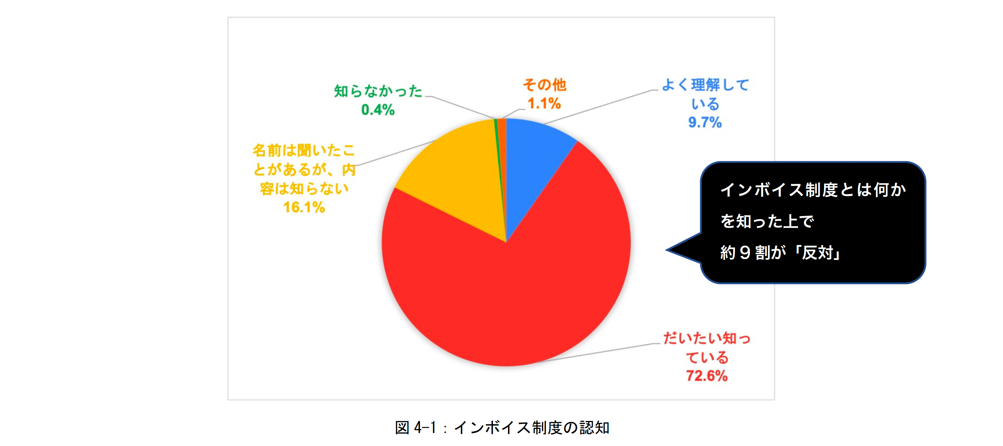 などの状況があると考えられます。前項の図3-1でインボイス制度を「将来的にも導入すべきではない」と回答した約9割のうち、その大半が「インボイス制度の内容を理解した上で反対している」ことが推測できる結果となっています。
