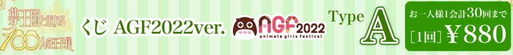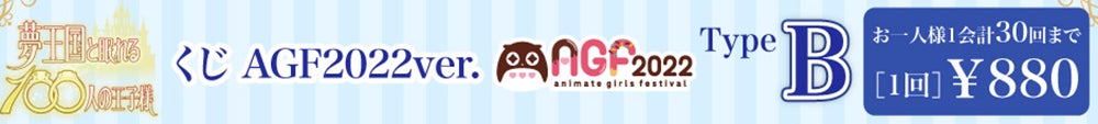 キャラクターグッズの商品企画・製作・販売を行う中外鉱業株式会社コンテンツ部は、「アニメイトガールズフェスティバル2022」にて「夢王国と眠れる100人の王子様 くじ AGF2022 ver. TypeA/TypeB」を販売いたします。当イベントは2022年11月5日(土)~11月6日(日)開催となります。