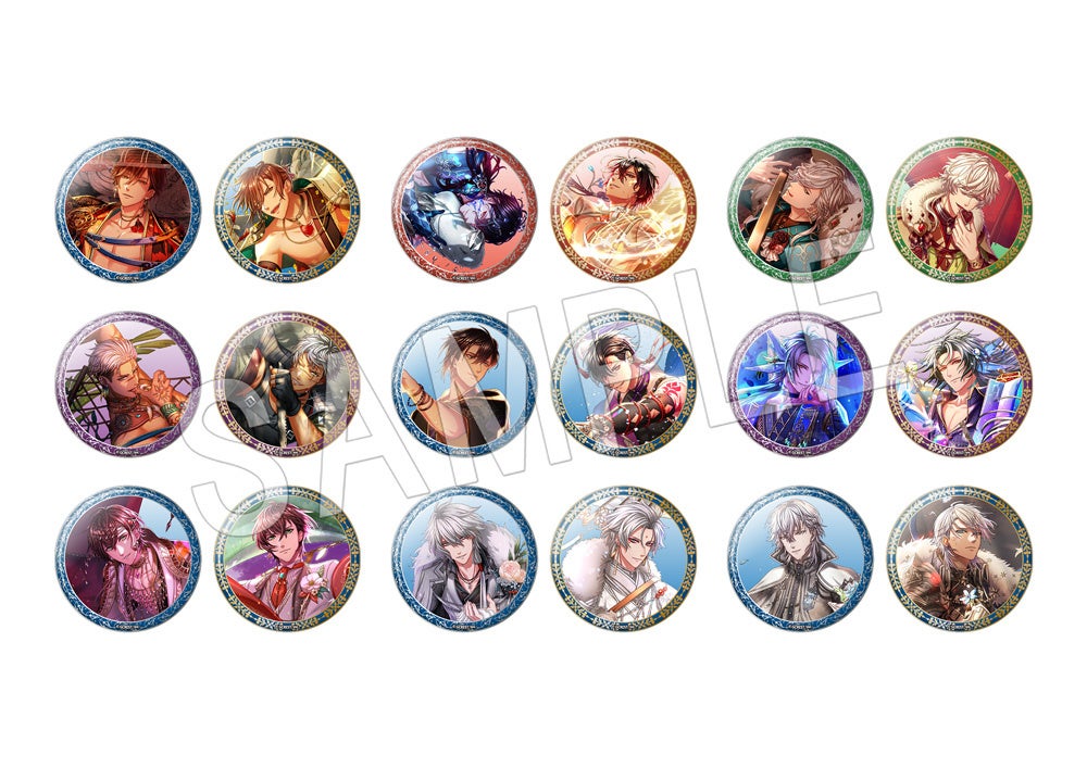 【E賞】缶バッジ2個セット(全9種) 【F賞】箔押しプラブロマイド2枚セット(全9種)