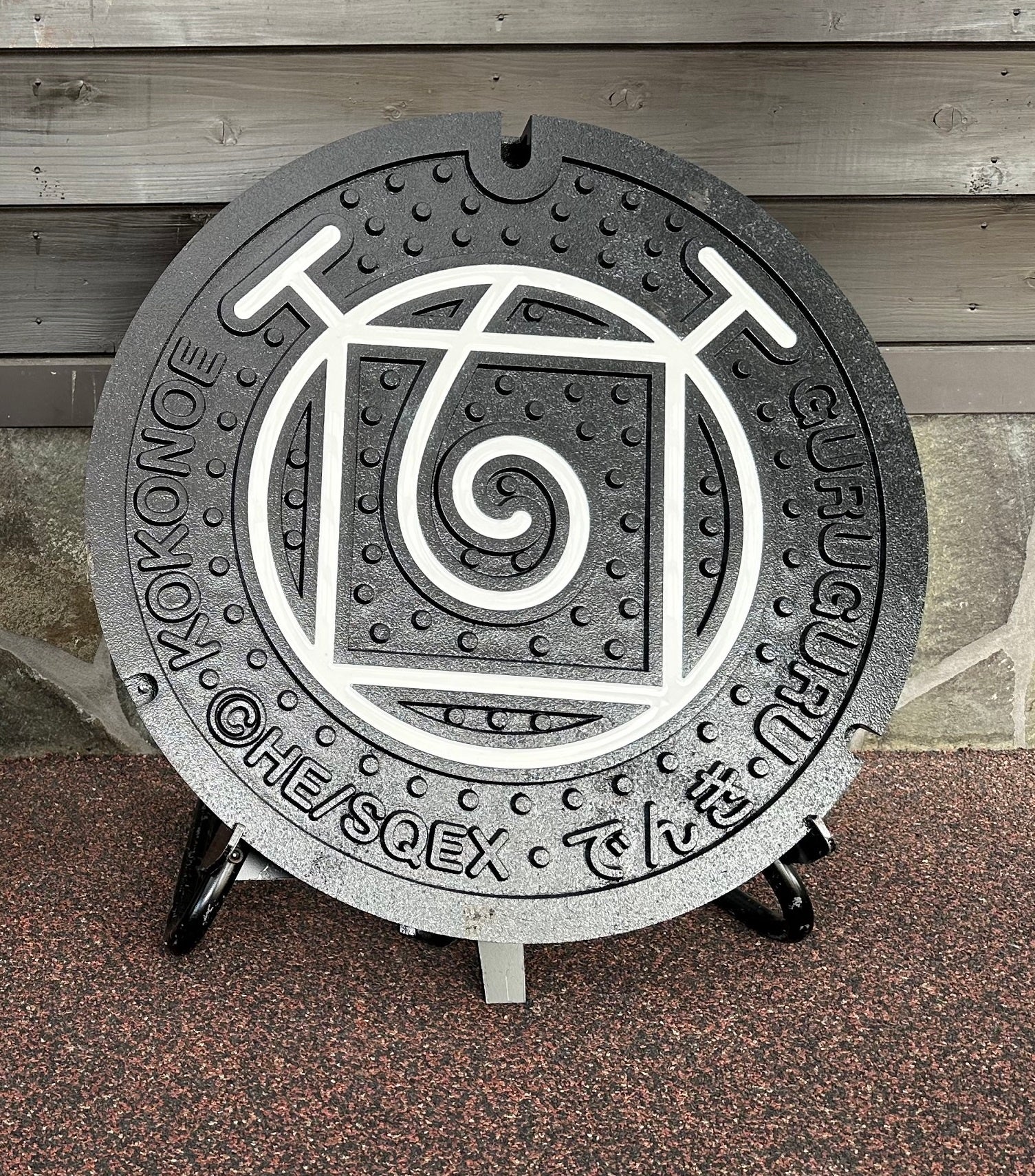 このマンホールは物産直売所がある中村エリアに設置しました。少しわかりにくいところにありますので、どこにあるか探してみるのも面白いかもしれません。その際には立ち入り禁止エリアに入らないようご注意ください。