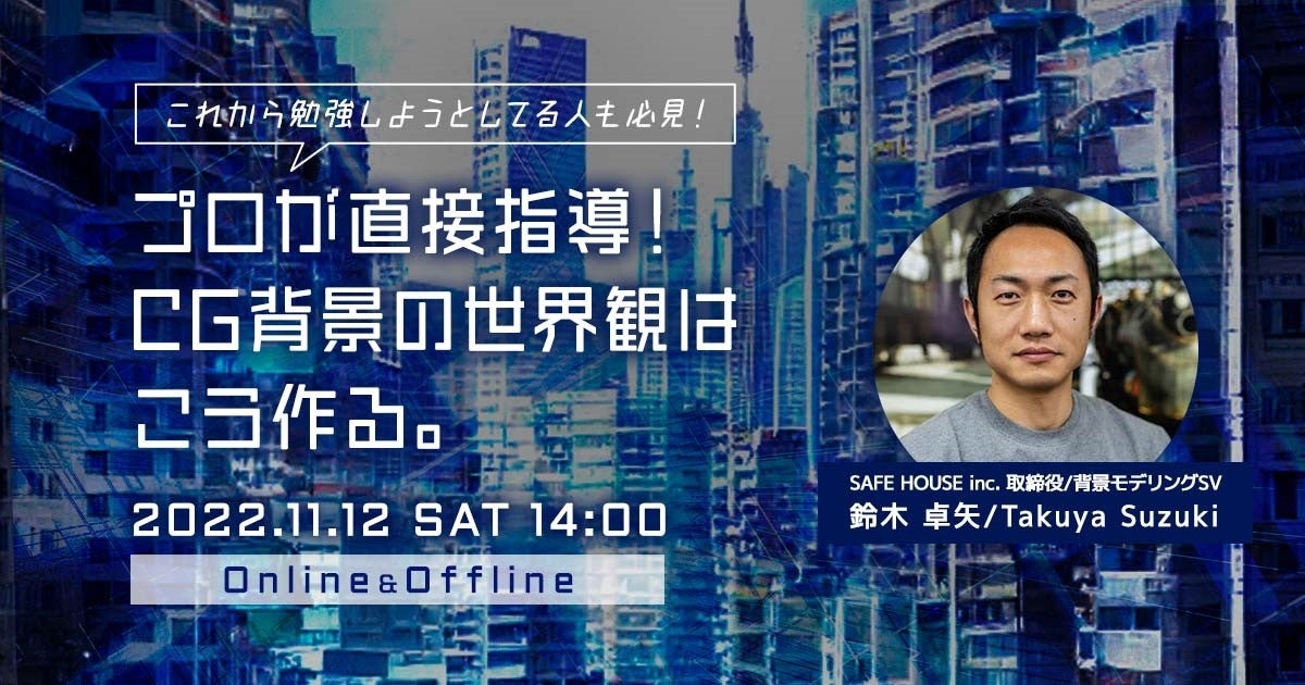 IT関連及びデジタルコンテンツの人材育成スクール、デジタルハリウッド(運営会社:デジタルハリウッド株式会社 本社/本校:東京都千代田区 学長:杉山知之)が運営をする、Webと動画のラーニングスタジオ『デジタルハリウッドSTUDIO』では、背景モデリングSV(スーパーバイザー)として背景のデザインからモデリングまでを担当し、多くの作品に携わり、また、デジタルハリウッドの特別講師も務めていただいているSAFE HOUSEの鈴木卓矢氏にご登壇いただき、11月12日に作品添削のイベントを開催いたします。