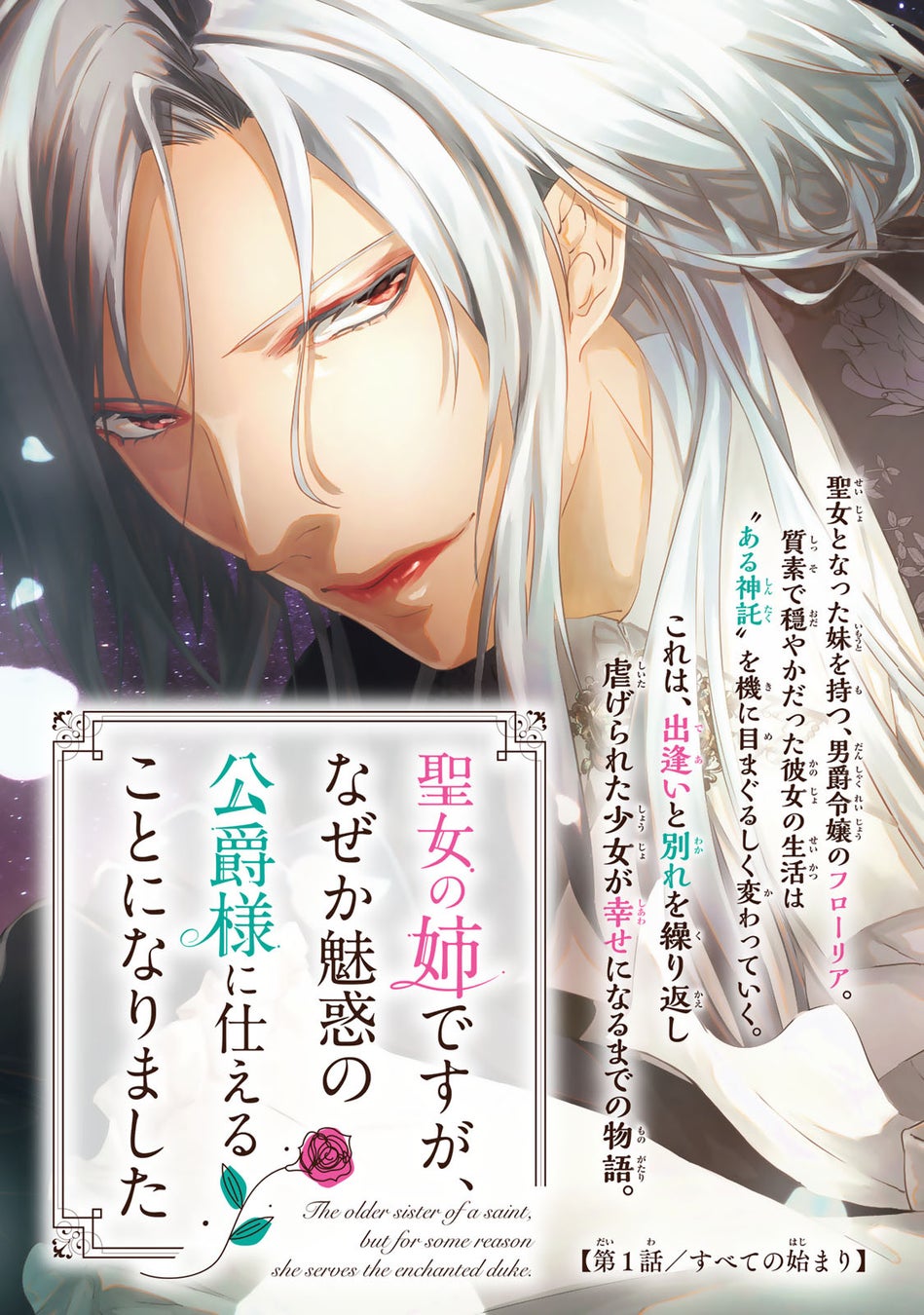 信託により聖女に選ばれた妹・レナータに迫害され、逃げるように貴族の召使として働き始めた貧乏男爵家の令嬢・フローリア。しかしそこで、フローリアはこの上なく美しい公爵デジレと出会い、人生が好転していく――。 安康先生の超美麗作画で描かれる、不幸な少女・フローリア×超イケメン公爵デジレとのシンデレラストーリーはもちろん、聖女でありフローリアの妹であるレナータにも大注目です!レナータの暴れっぷりに夢中になること間違いなし‼
