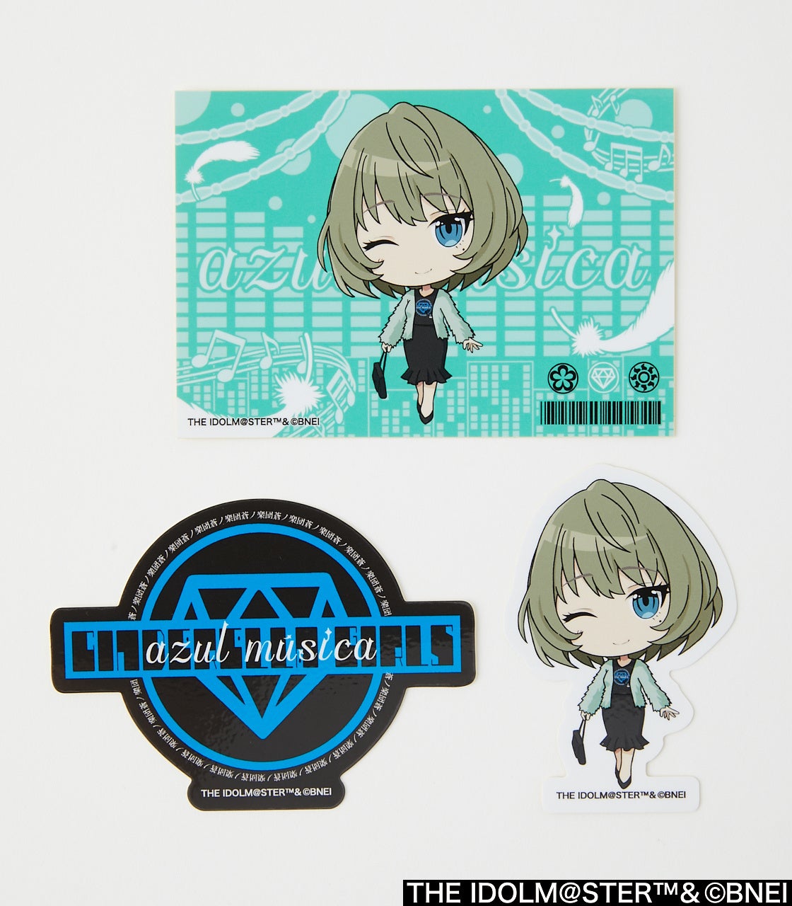 1枚で存在感のある背景付きのステッカー、アイドルがダイカットされたステッカー、ユニットロンTのデザインステッカーとお好きなデザインをご自由に貼って遊べるセット。