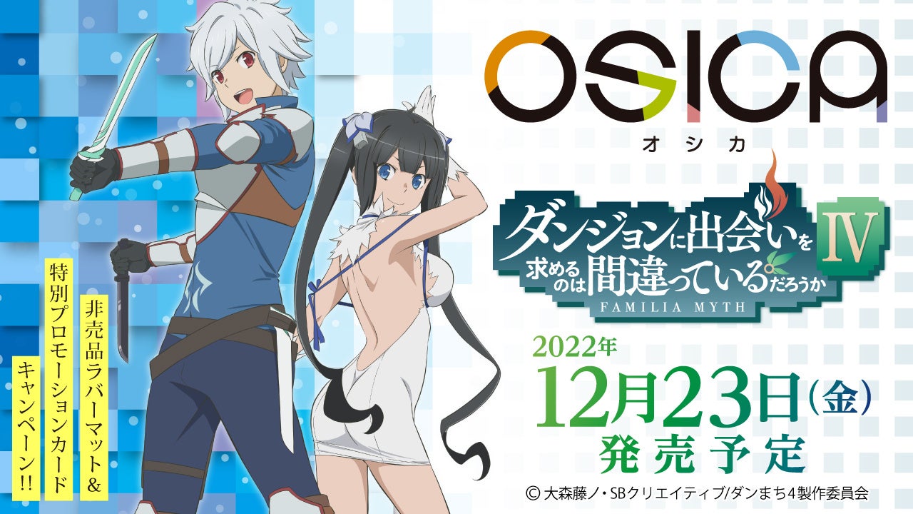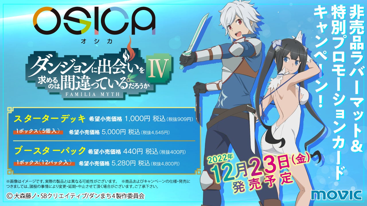 株式会社ムービック(本社:東京都豊島区、代表:國枝信吾)から、人気アニメが続々参戦中のトレーディングカードゲーム(以下、TCG)、「OSICA(オシカ)」が発売中。「自分の推しキャラで相手のハートを奪う」。作品・キャラクターへの愛を何より大切にした新しいカードゲーム。その第6弾「ダンジョンに出会いを求めるのは間違っているだろうかⅣ」が2022年12月23日に発売します。