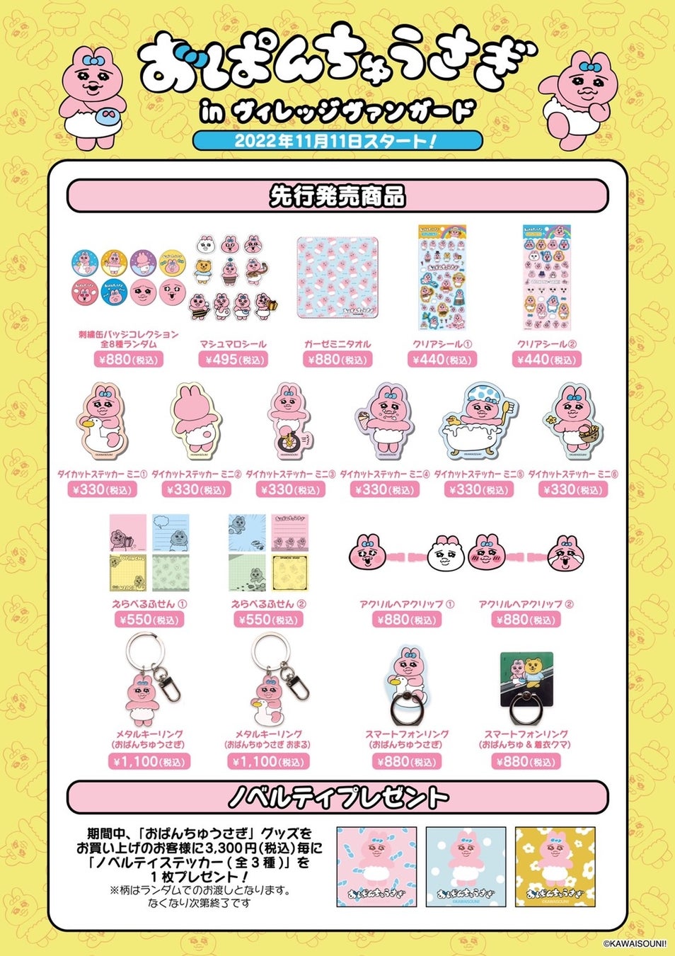 株式会社ヴィレッジヴァンガードコーポレーション(所在地:愛知県名古屋市、代表取締役社長:白川篤典)では、2022年11月11日(金)より、全国約160店舗にて「おぱんちゅうさぎ」の新商品の販売を開始いたします。