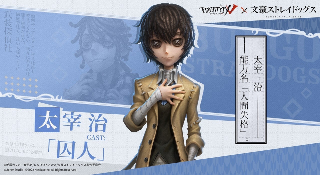 『Identity V』×『文豪ストレイドッグス』コラボ第一弾では、「傭兵」UR衣装-中島敦がショップに登場し、初週のみ20%オフで購入できる。また、「囚人」UR衣装-太宰治と「囚人」UR携帯品-『太宰の愛読書』のパックも登場し、パックで購入すると32%オフとなる。