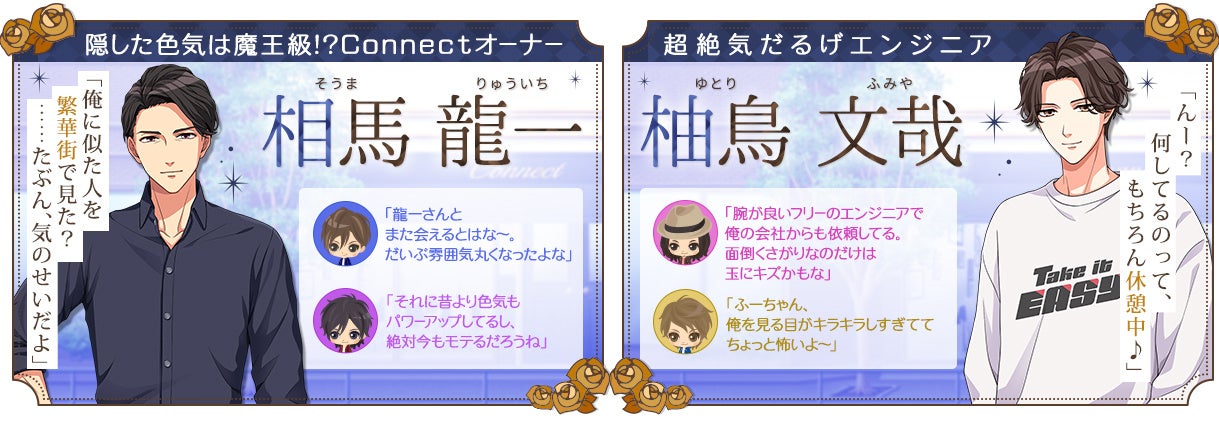 プラスマリッジ編では新キャラクターも続々登場!アプリの告知ページではショートストーリーも公開となりました。一足早く2人の会話を見ることができるのでぜひご確認ください♪